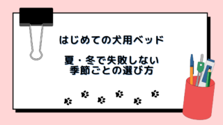 安心アイテム はじめての犬用ベッド|夏・冬で失敗しない季節ごとの選び方 犬用ベッドは一年中同じでいい?夏と冬では選び方のポイントが違います。通気性や保温性、設置場所の工夫まで、初めて犬を迎える方にわかりやすく解説します。 2025.09.27 安心アイテム