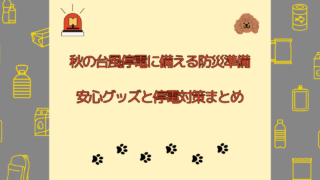 防災&備え 犬の留守番中に停電!エアコンが止まったときの体験談と対策 犬の留守番中に停電!エアコンが止まってしまったらどうする?私の体験談をもとに、外出先から温度管理する方法や安全対策を詳しく解説します。 2025.09.19 防災&備え